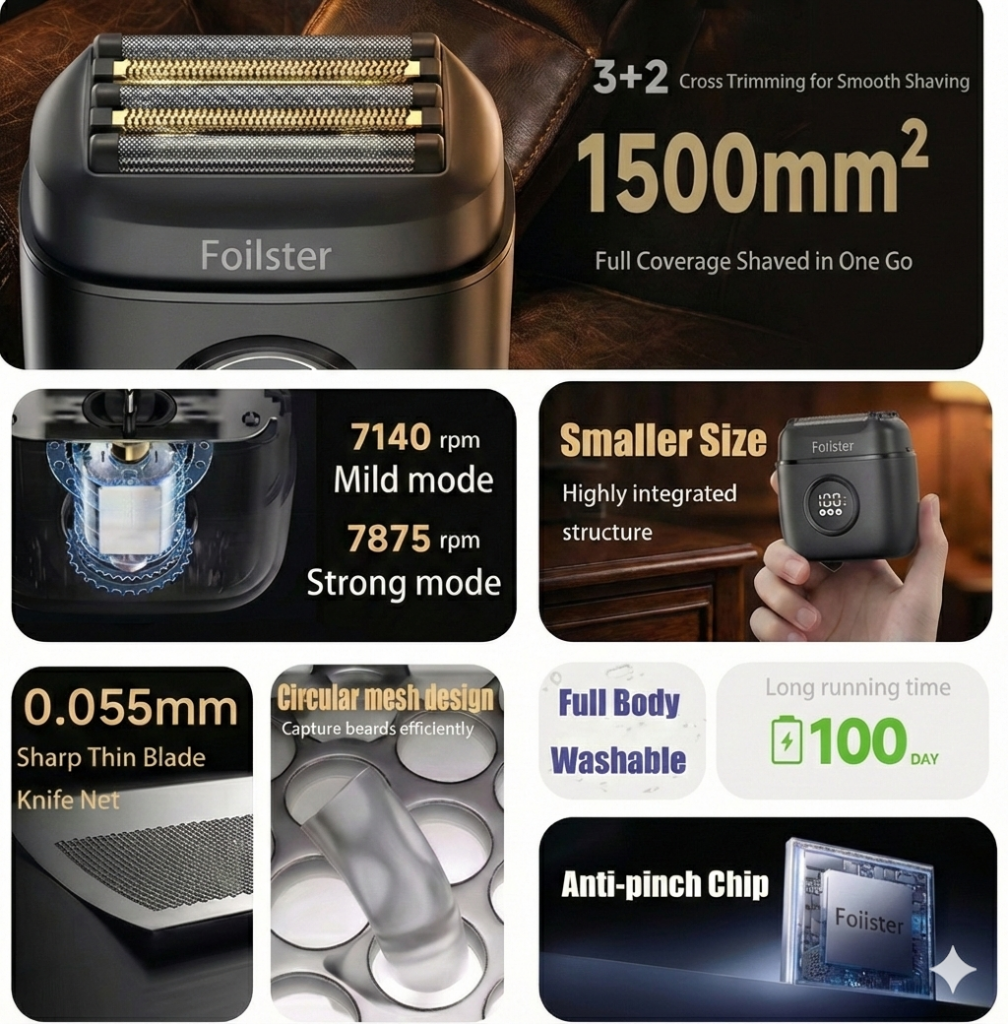 Foilster redefines portable grooming with cutting-edge precision engineering. Our mission is to deliver professional-quality shaving results in an ultra-compact design that fits seamlessly into your lifestyle. Whether you’re traveling, commuting, or maintaining your daily ritual, Foilster combines advanced shaving technology with portability to ensure you never compromise on grooming excellence.
